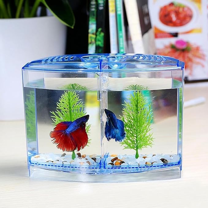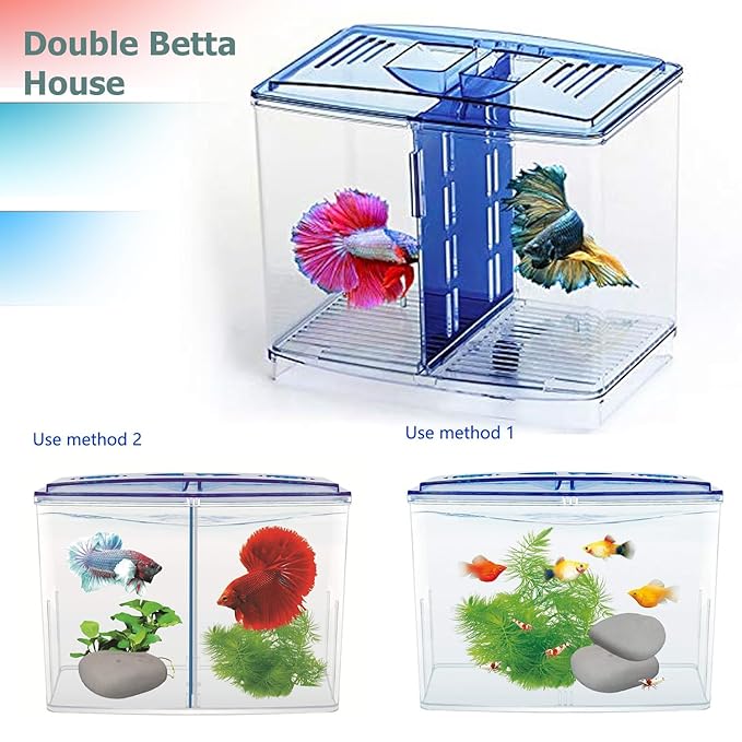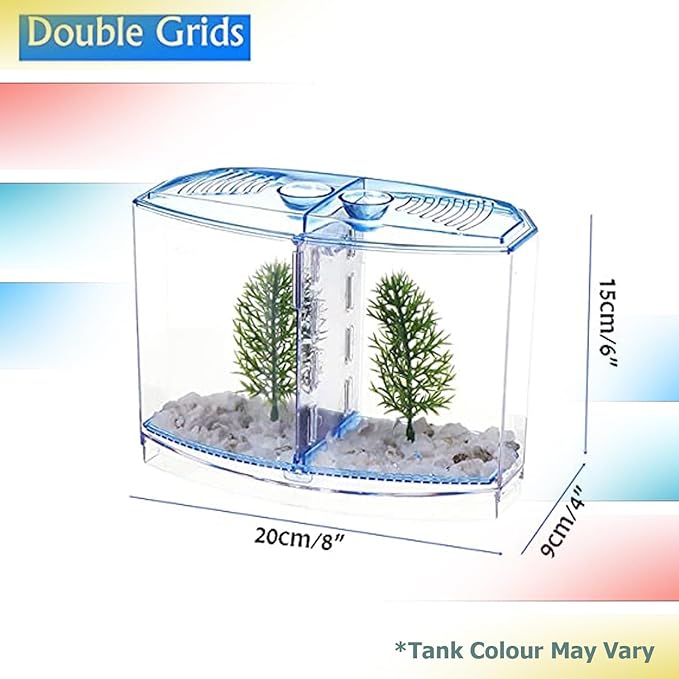 حوض سمك بيتا مزدوج من الأكريليك صندوق حاضنة صغير للأسماك المقاتلة لعزل القلي.