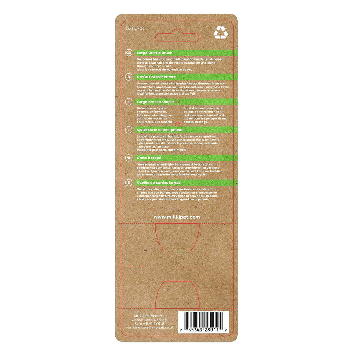 Our earth-friendly, handmade bamboo bristle brush helps remove dead hair and distribute natural oils and shine through your pet's coat. Ideal for smooth short/medium coats.