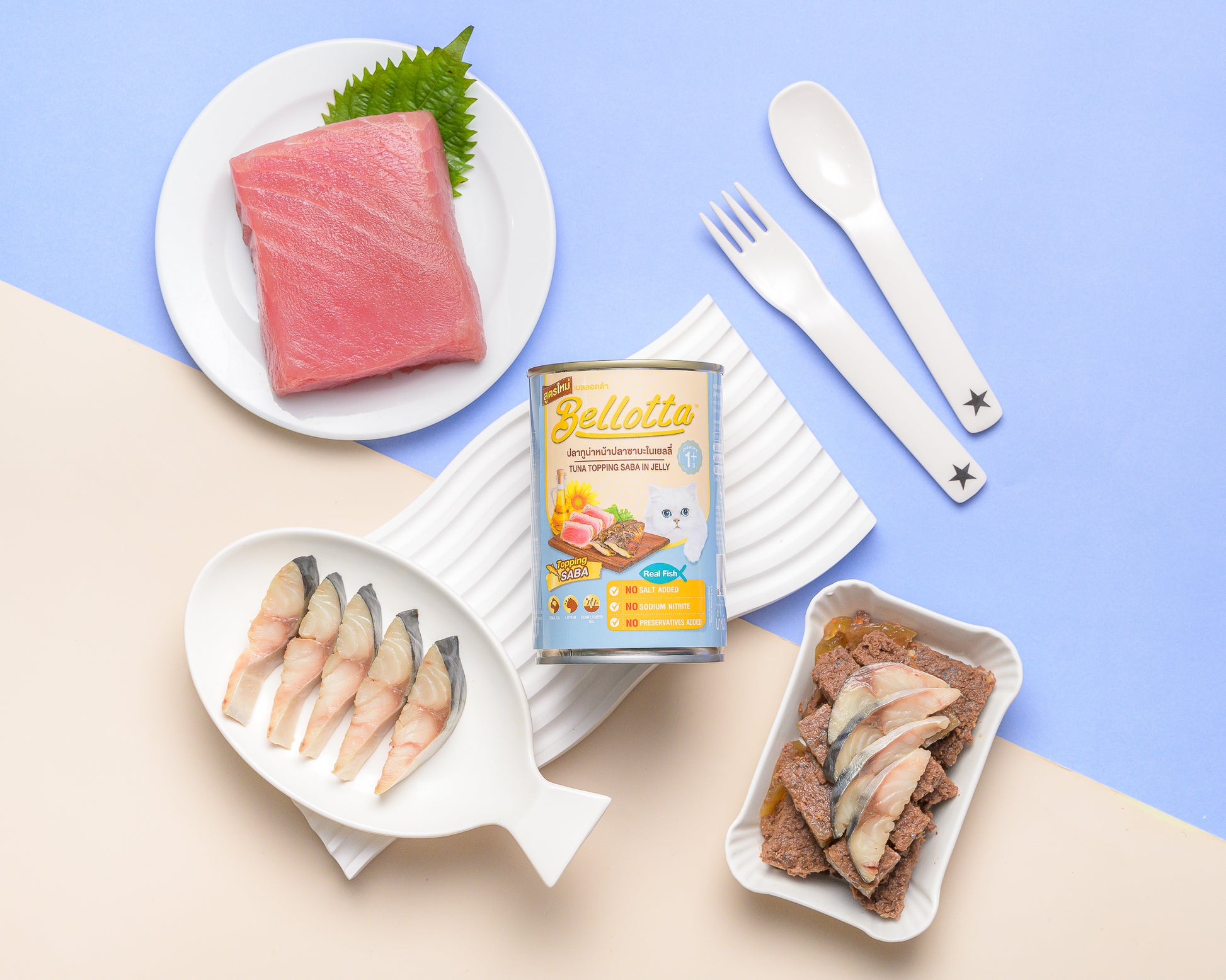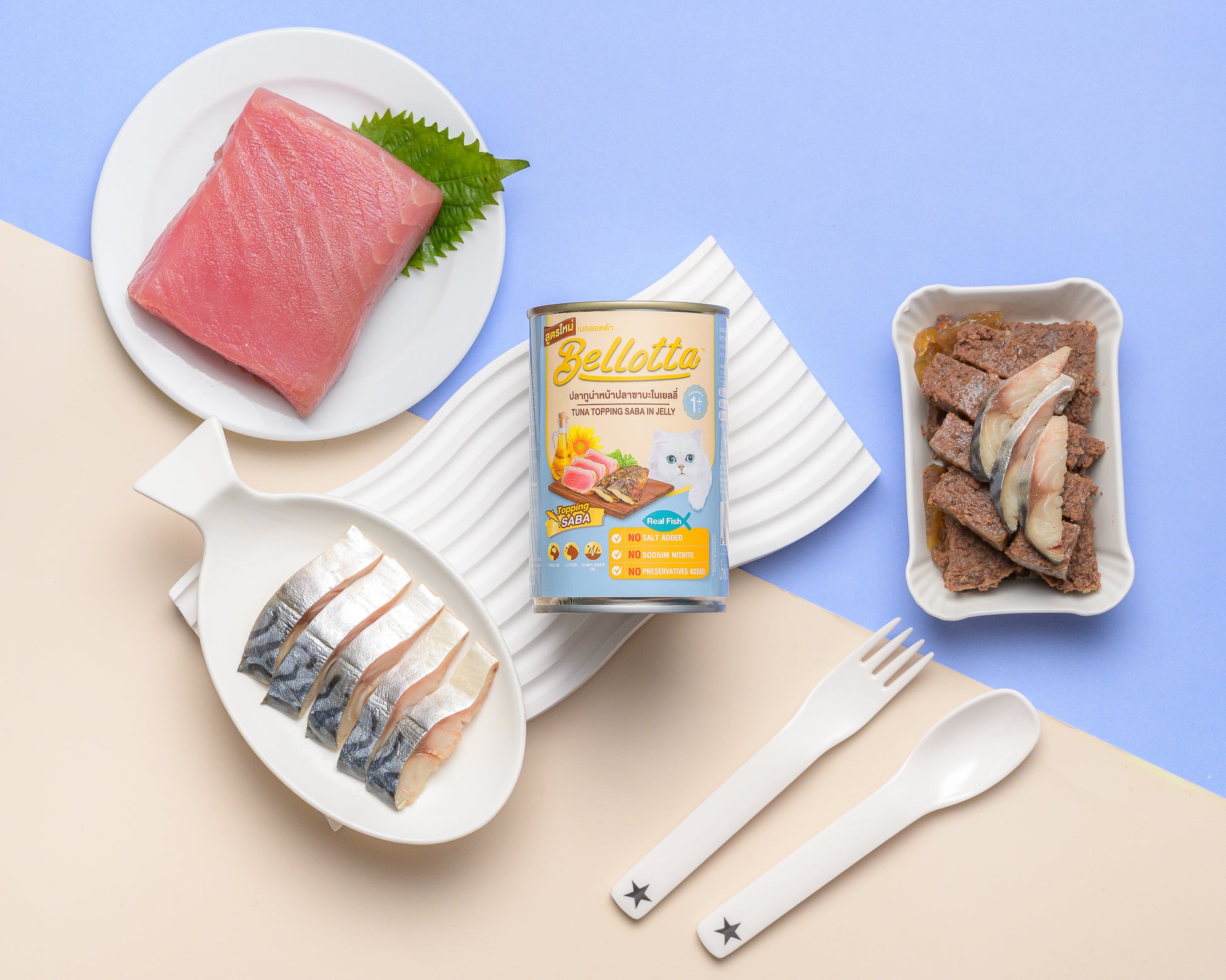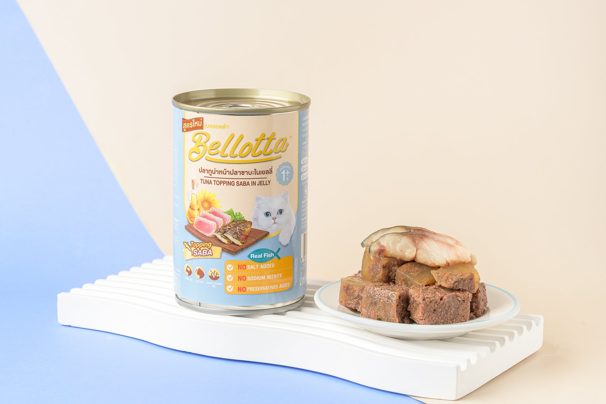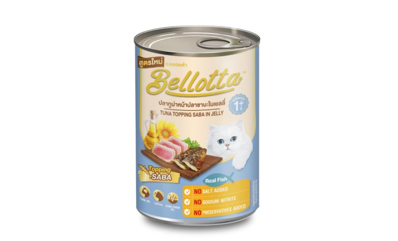 Bellotta 400g Can Tuna Topping Saba in Jelly is a delicious cat food made with real tuna and topped with saba fish, all served in a tasty, hydrating jelly. This high-protein meal provides essential nutrients to support your cat's health, including a shiny coat and overall vitality. Ideal as a complete meal or a flavorful topper for dry food.