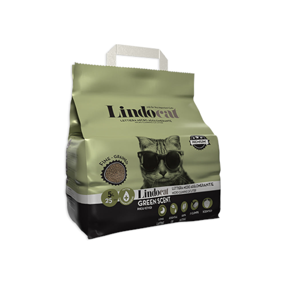Lindocat Green Scent is a clumping litter made of 100% fine-grained bentonite. The smaller granules mean the litter rapidly clumps and forms solid lumps, with minimal waste of product. The pleasant pine scent, together with the antibacterial and anti-fungal effects of Vetiver, makes Lindocat Green Scent the ideal litter for those looking for maximum cleanliness and hygiene.