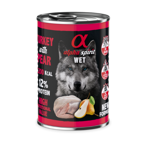 A delicious pate made from minced meat for adult dogs of all breeds and enriched with small bites of fresh fruit.