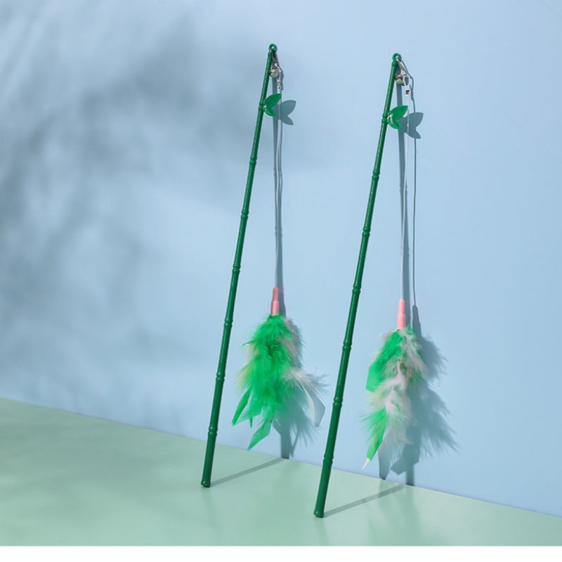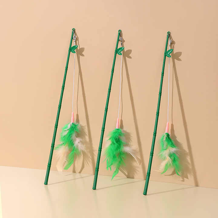 Eco-Friendly Durable Silicone Bamboo Feather Funny Wand Cat Teaser Sticks Pet Interactive & Movement Toys