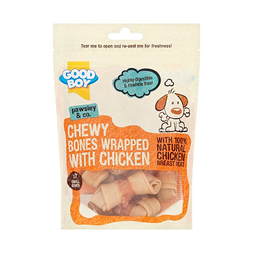 هذه العظام المطاطية الملفوفة بالدجاج مصنوعة من لحم صدر دجاج طبيعي 100% لذيذ للغاية، لذا تأكد من أنها ستصبح واحدة من الأطعمة المفضلة لدى كلبك. معبأة بشكل جميل في حقيبة سهلة الاستخدام وقابلة لإعادة الإغلاق، بالإضافة إلى كونها لذيذة بشكل مذهل، فهي مليئة بالخيرات الطبيعية أيضًا كما هي: