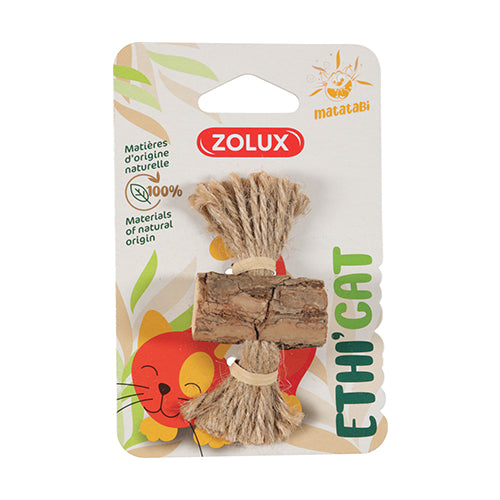 Toys made from 100% natural-origin materials: silver vine wand, hessian rope.