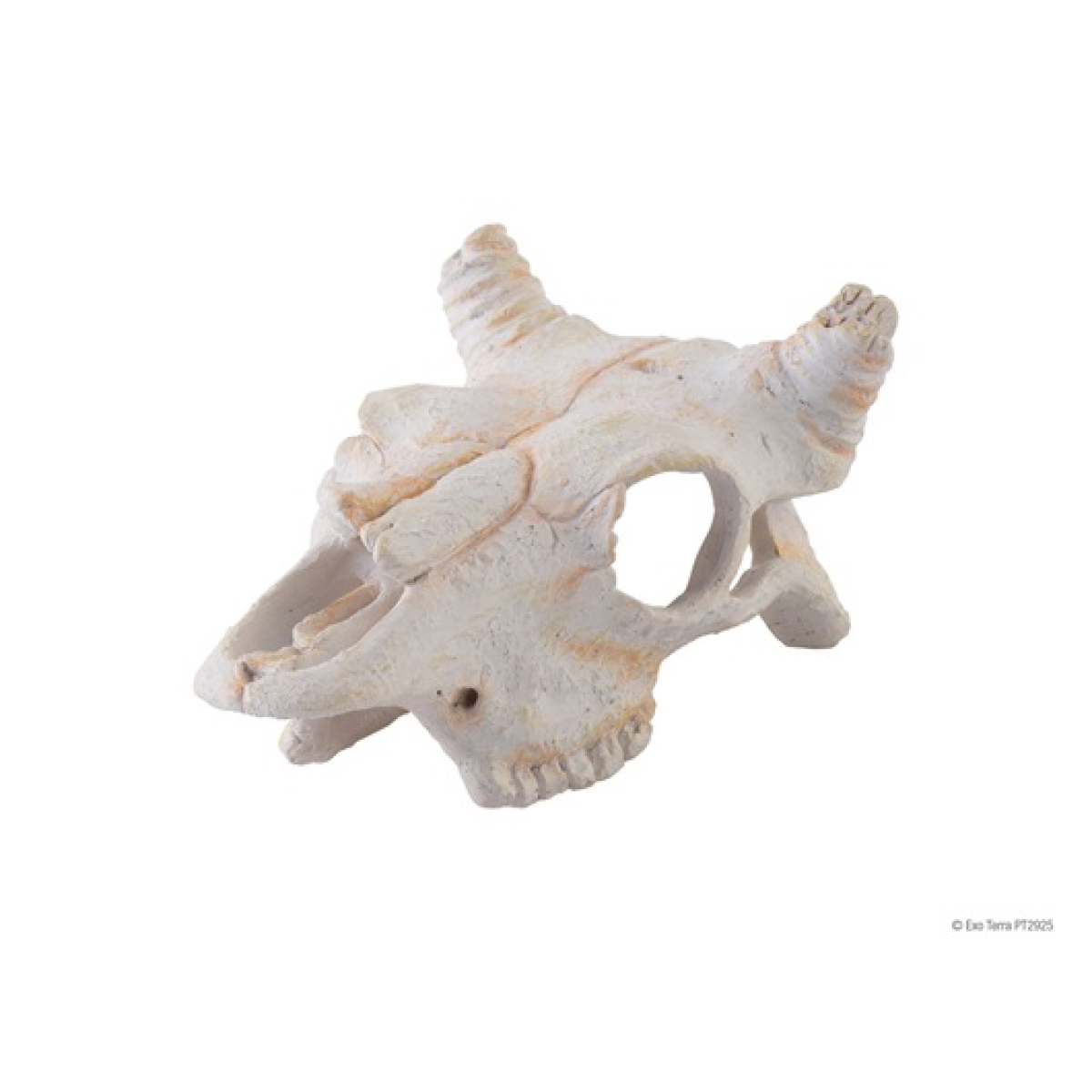 The new Exo Terra Buffalo Skull hideout is designed with multiple entrances for easy access and adds an extra dimension to the terrarium setup. The perfect hiding place for your reptile!