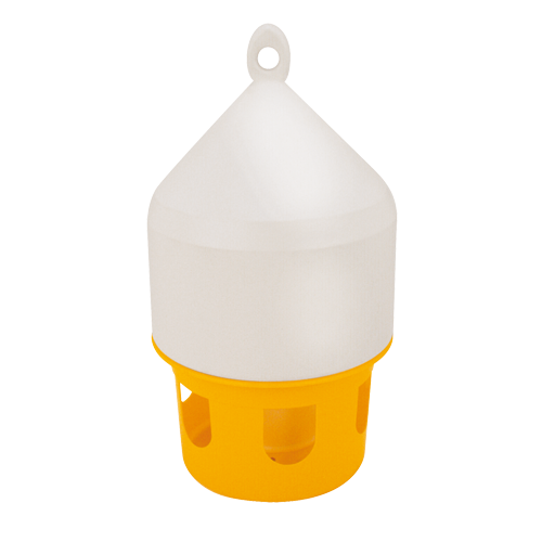 Plastic 8L feeder comes with lifting handles for easier moving, they have a yellow base and white top. Made in Italy