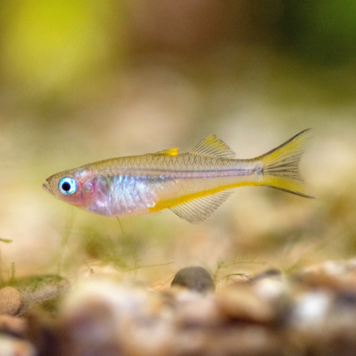 - Striking yellow fins and electric-blue eyes make it a visually stunning nano species