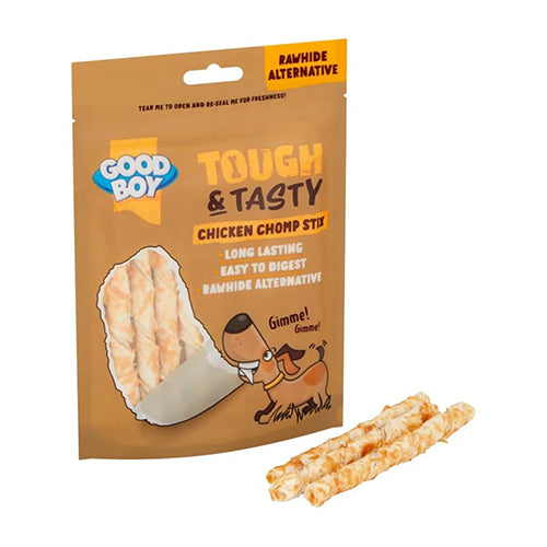 Good Boy Tough & Tasty Chicken Chomp Stix are the perfect treat to help keep your dog busy between meals.