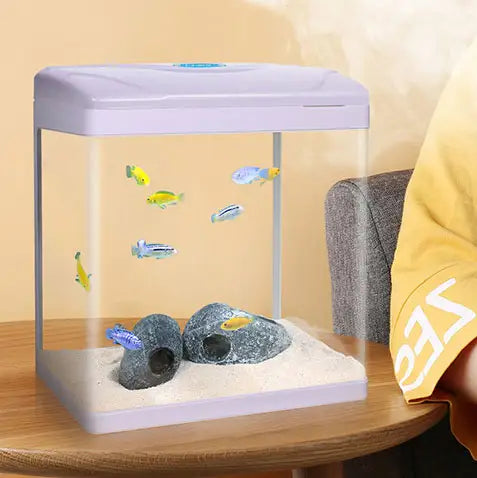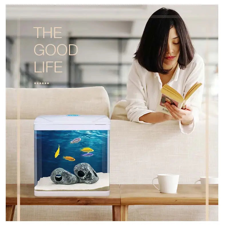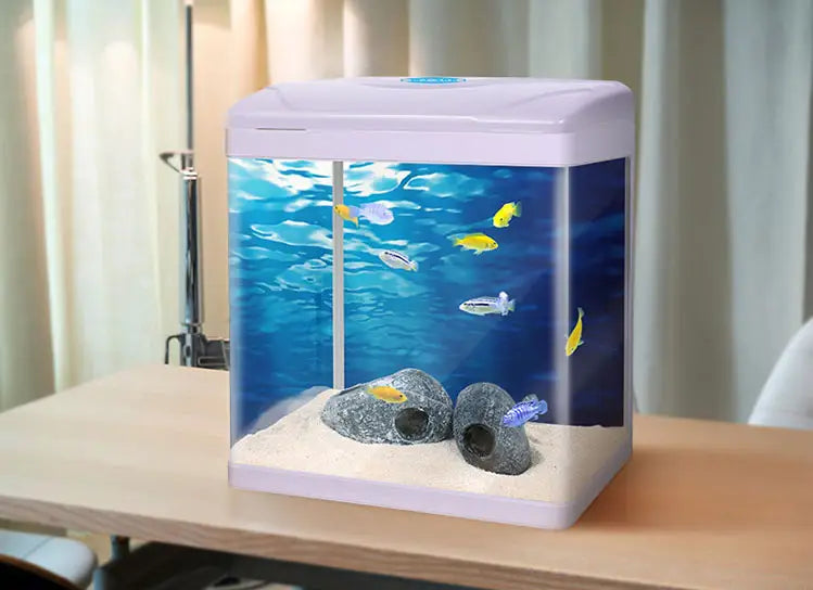حوض سمك MJ-238 بغطاء حجم 7 لتر مقاس 238x175x315 ملم اللون فضي MINJIANG
