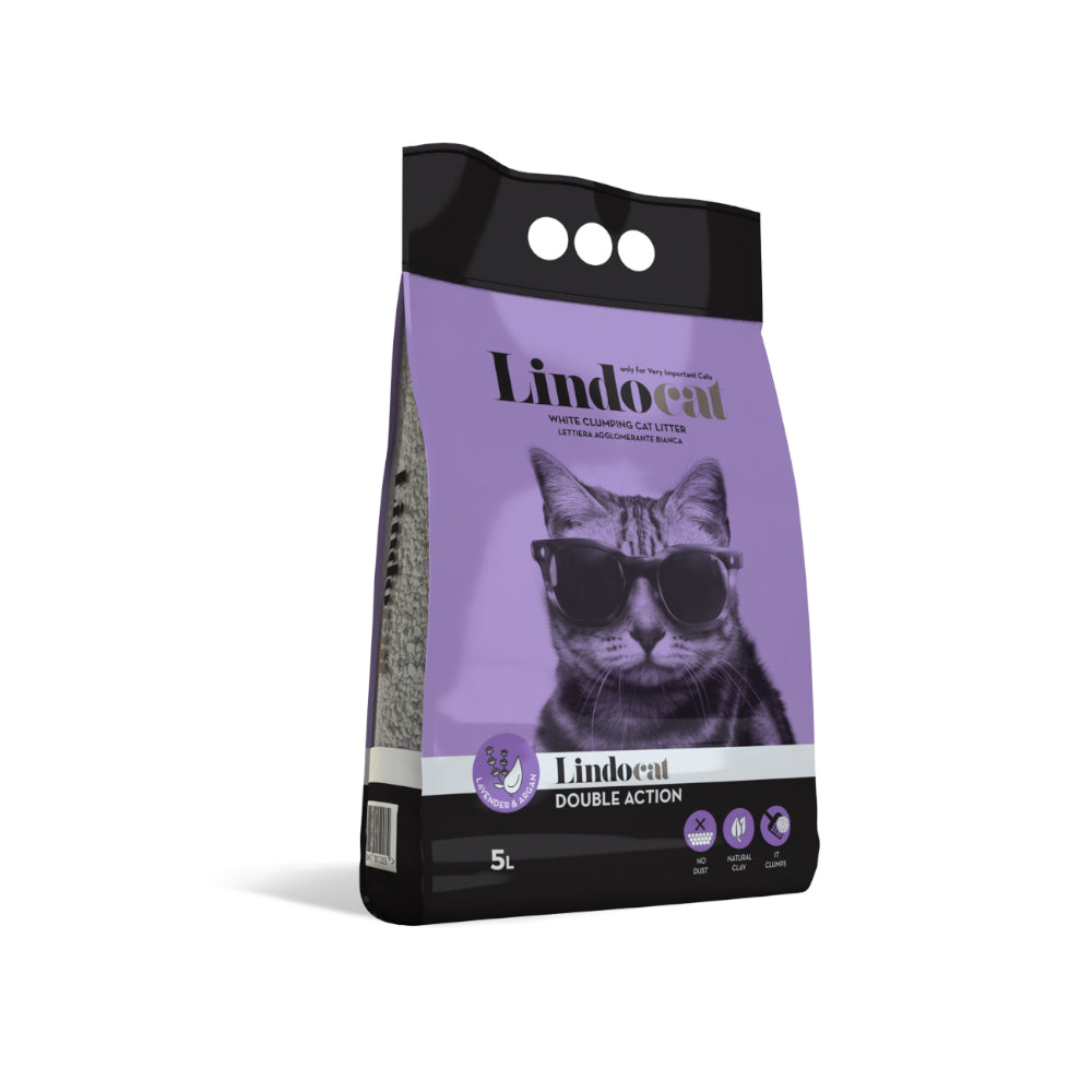 Lindocat Double Action, is a first class performance clumping cat litter. Made of 100% premium pure white bentonite, enriched with purple granules, it has excellent clumping, absorption and odour retention properties. The pleasant lavender scent, together with the beneficial properties of Argan oil, make Lindocat Double Action the ideal litter for long-haired cats.