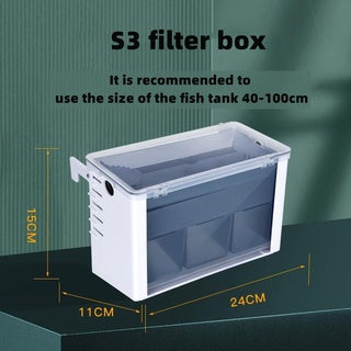 - Install the filter box according to the manufacturer’s instructions, typically either inside the aquarium or hanging on the back.