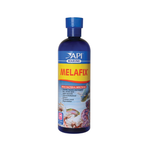 API® MARINE MELAFIX fish remedy is a safe, natural fish remedy that should be used to treat bacterial infections in saltwater fish and corals. MARINE MELAFIX fish remedy contains Melaleuca (tea tree) extract to soothe and calm your fish, and rapidly repairs various fish ailments, from open sores to pop eye. It also reverses coral degradation.