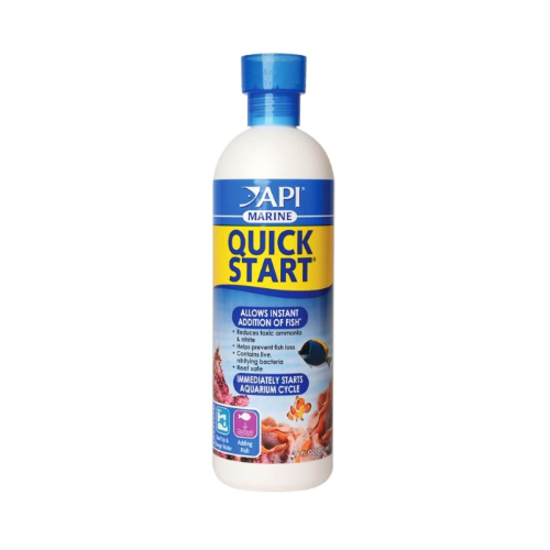 API MARINE QUICK START nitrifying bacteria reduces toxic ammonia and nitrite, helping to prevent fish loss, and is safe for reef aquariums. Product may be used after water or filter changes, when adding new elements to your aquarium, or after medicating your fish.