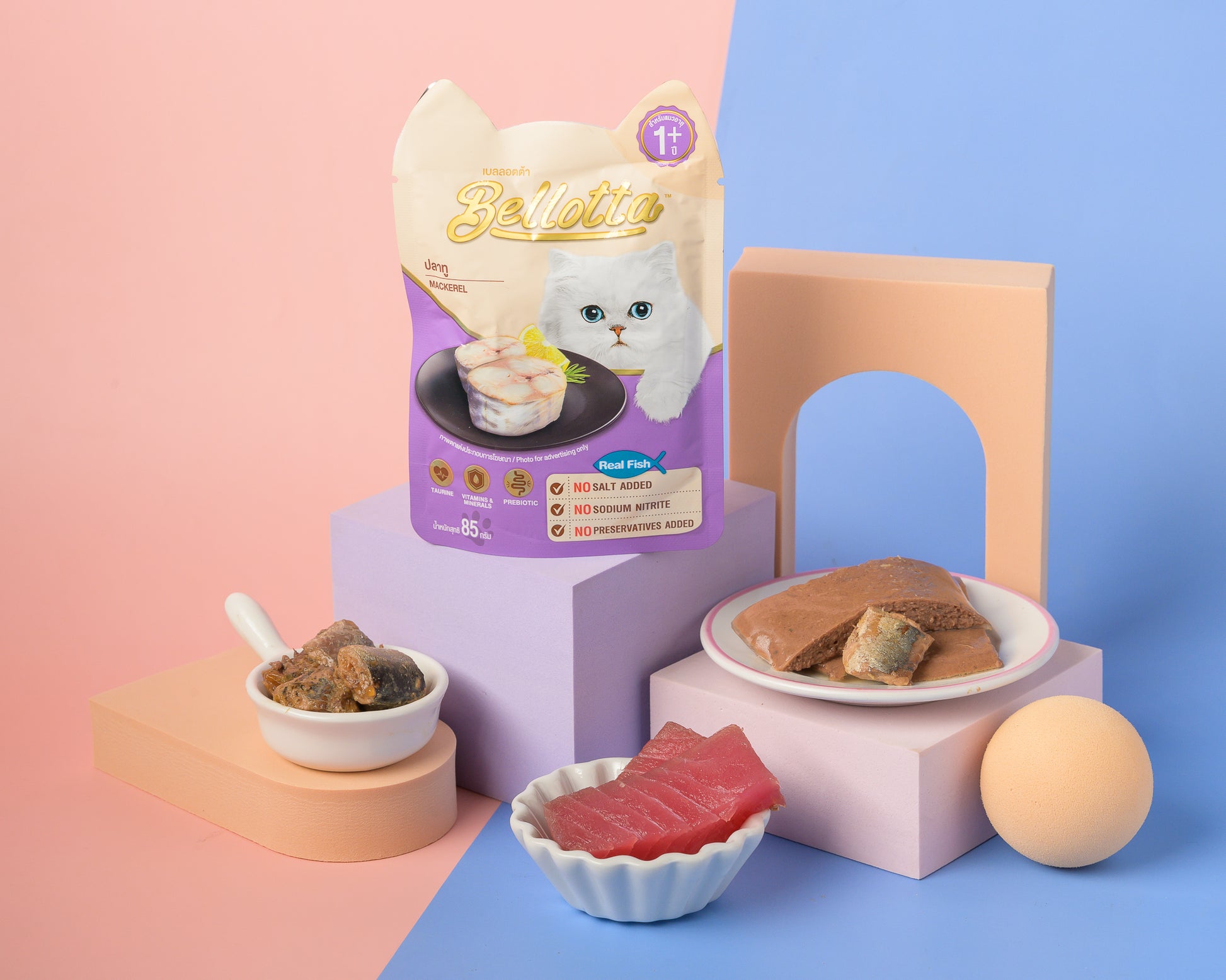 An 85g pouch of wet cat food featuring Mackerel flavors. Contains taurine and essential vitamins for your cat's growth.