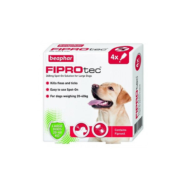 Beaphar FIPROtec® Spot-On for Large Dogs kills fleas and ticks on dogs, and continues to kill fleas for up to five weeks and ticks for up to four weeks. Suitable for dogs over 8 weeks of age and weighing between 20-40kg