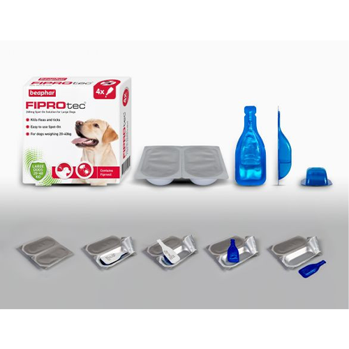 Weigh the dog carefully before application to ensure it is over 20kg. Do not remove the pipette from the blister until the product is ready to be used. Holding the pipette upright, snip off the top of the pipette. Part the dog’s fur between the shoulder blades, and apply the contents of one pipette to the skin’s surface, half between the shoulder blades and half at the base of the head. For continuous protection re-apply once every four weeks.