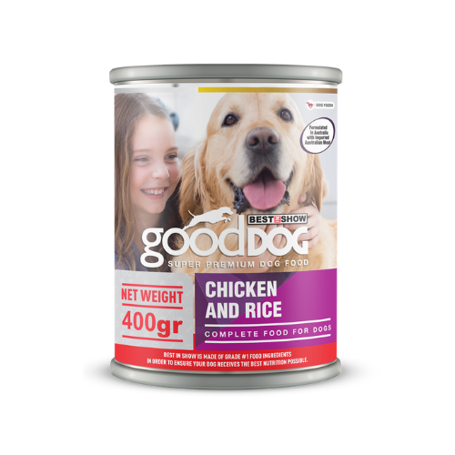 Give your furry friend a delicious and nutritious meal with Good Dog Chicken! This 400g canned dog food is made with real chicken and formulated to provide balanced nutrition for adult dogs of all breeds.