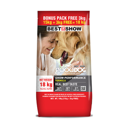 Best In Show Good Dog is a Super Premium dog food product that contains amino acids, fatty vitamins and minerals that are good for health.