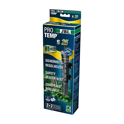 Heating for aquariums, 25W safety heater-stat with protective basket.