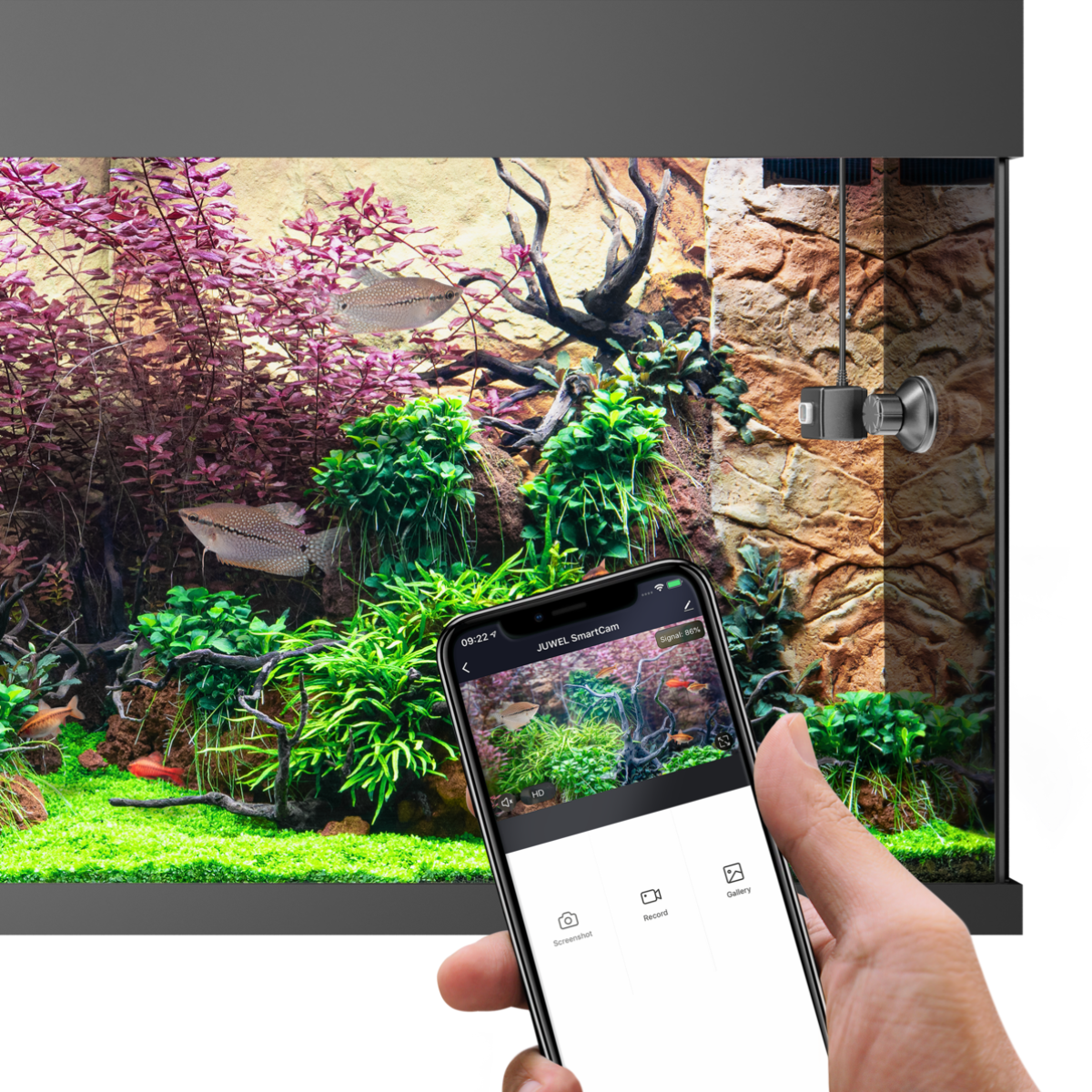 The JUWEL SmartCam allows you to comfortably monitor your aquarium from anywhere. Keep an eye on your underwater world at all times.