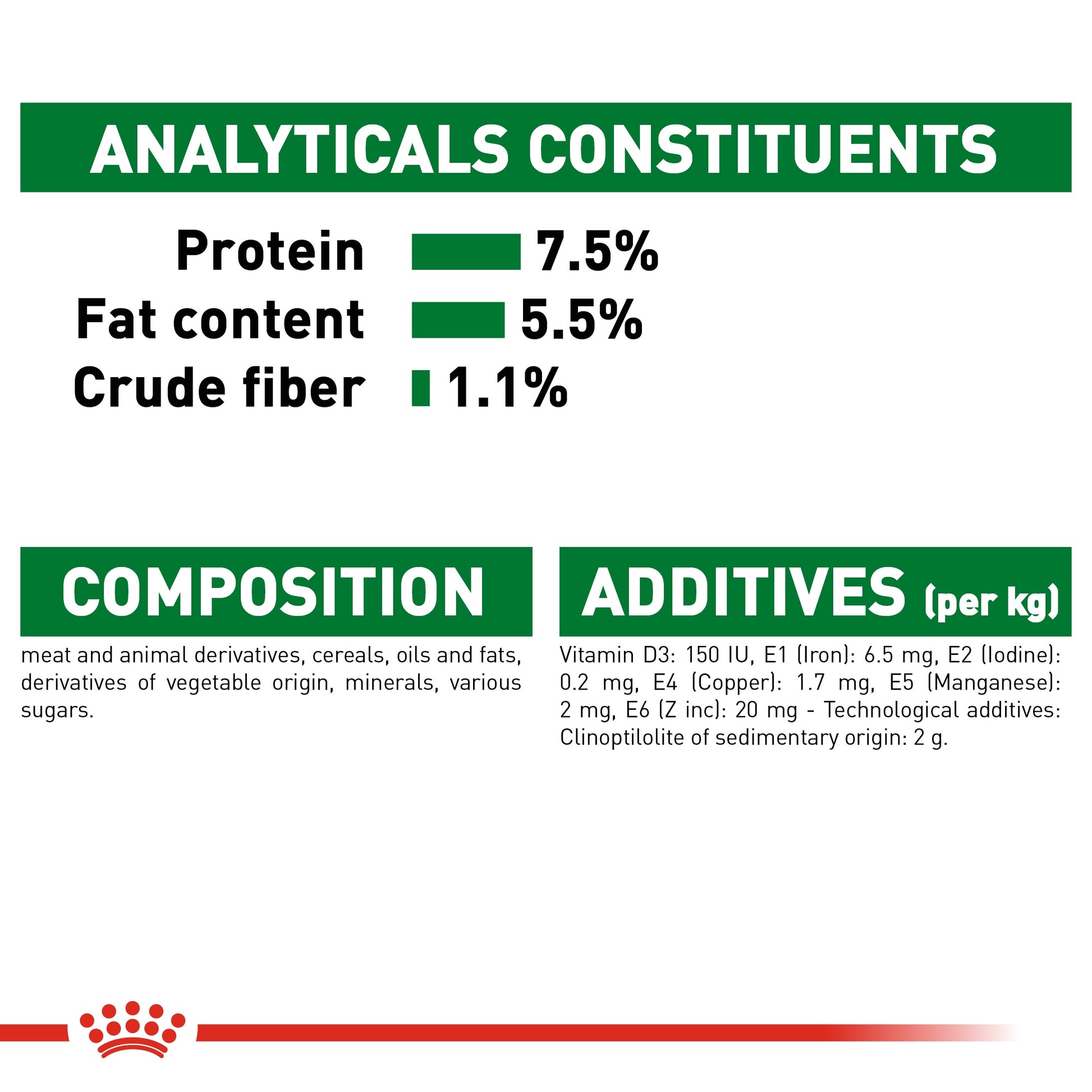 ROYAL CANIN® Mini Adult in Gravy is specially formulated with all the nutritional needs of your mini adult dog in mind. ROYAL CANIN® Mini Adult in Gravy is suitable for all small dogs aged between 10 months - 12 years that weigh up to 10kg. The formulation of specific nutrients in ROYAL CANIN® Mini Adult in Gravy helps to support your dog's digestive health, as well as helping to maintain a good balance of intestinal flora. The carefully adapted energy content in ROYAL CANIN® Mini Adult in Gravy helps to maintain an ideal weight in small breed dogs like yours. What's more, ROYAL CANIN® Mini Adult in Gravy is also enriched with nutrients that help to support your adult dog's healthy skin and coat condition - such as Omega-3 fatty acids EPA and DHA. To cater to each dog's individual preferences, ROYAL CANIN® Mini Adult is also available as dry food, with crunchy and tasty kibble. If you're considering mixed feeding, simply follow our feeding guidelines to ensure your dog gets an accurate amount of both wet and dry food for optimal benefit.