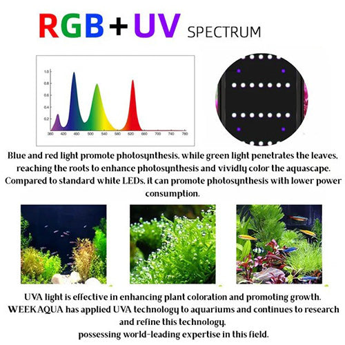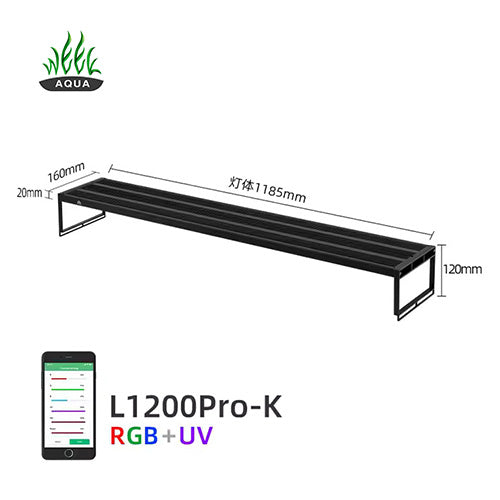 Illuminate your planted aquarium with the Week Aqua L Series L1200K Pro. Featuring a 130W RGB+UV full spectrum, 7800 lumens, and Bluetooth app control, it's designed for tanks 120–130cm.